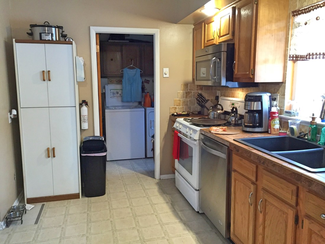 - A Cupboard – My husband’s parents were also gracious enough to provide us with a cupboard of theirs that we could use to store some of our food items. It fits perfectly into a corner in our kitchen, and it has been very useful for giving us a place to put items that we use regularly.